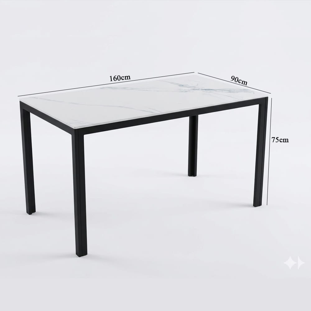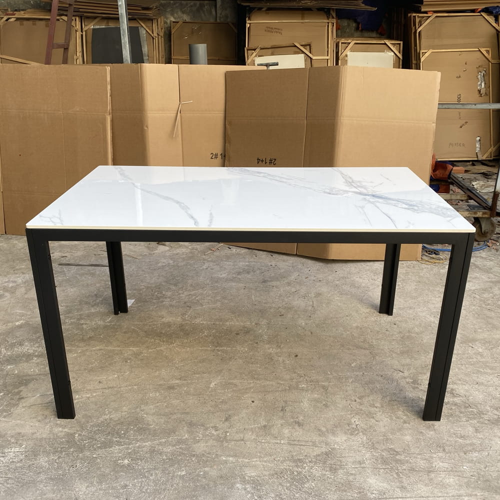 | Chất liệu | Bàn ăn Mặt đá phiến dày 12mm, chống nhiệt,chống trầy xướt, chân thép sơn tĩnh điện đen, kt: 70*120*75, 80*140*75, 90*160*75 |