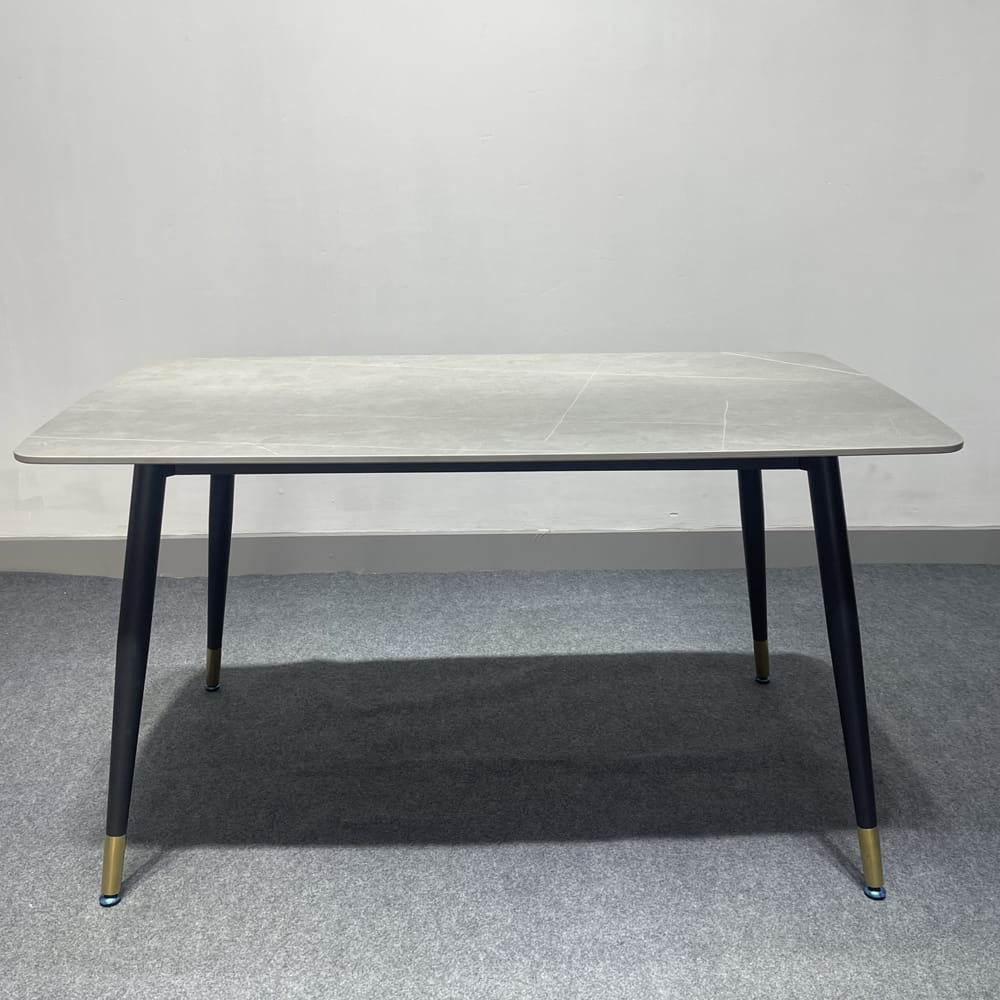 Chân bàn: Được làm từ thép sơn tĩnh điện màu đen bền bỉ. Điểm nhấn đặc biệt là phần đuôi chân được bọc núm đồng (hoặc sơn mạ vàng) sang trọng, giúp bảo vệ chân bàn và tăng tính thẩm mỹ.
