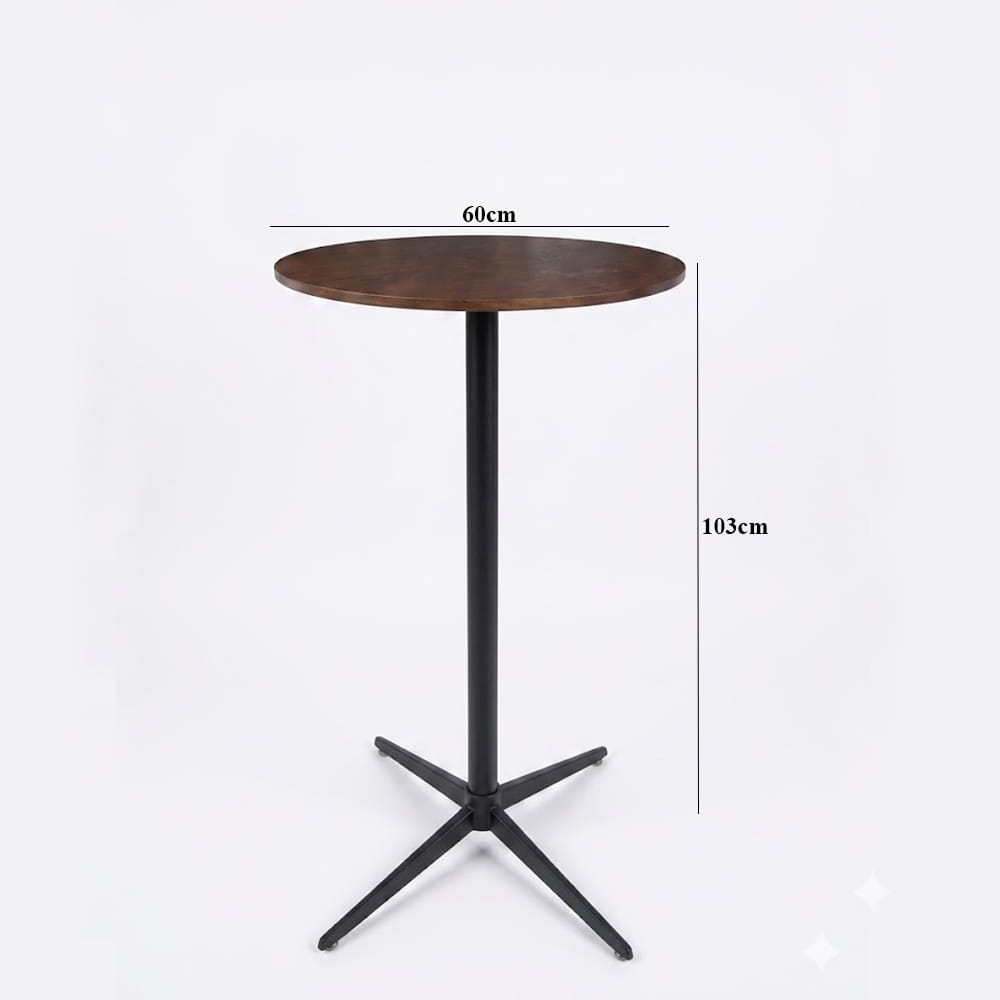 Kích thước chuẩn: Với đường kính mặt bàn Ø60cm và chiều cao 103cm, sản phẩm được tính toán kỹ lưỡng để phù hợp với các loại ghế bar tiêu chuẩn, mang lại tư thế ngồi thoải mái nhất.
