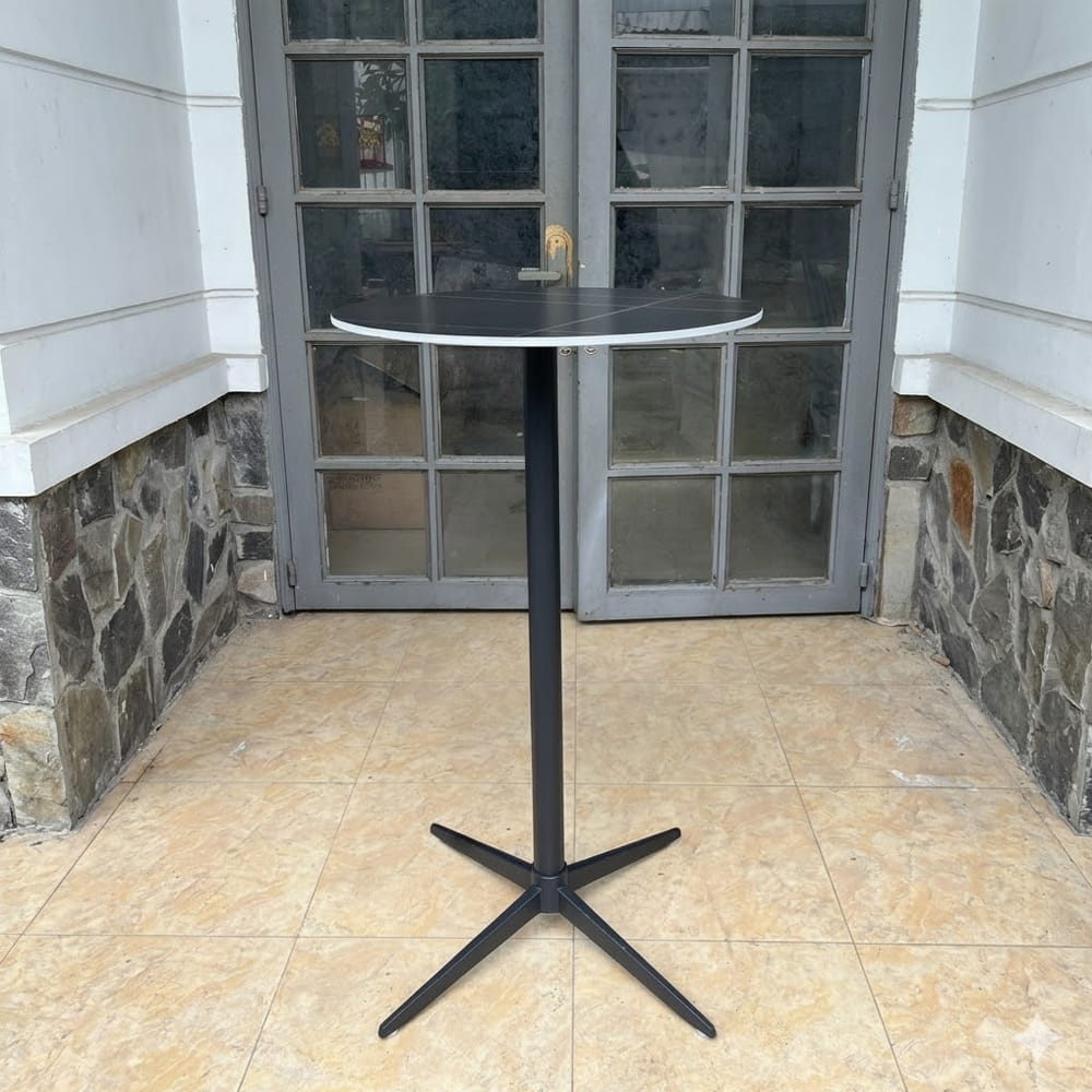 | Chất liệu | Bàn bar Mặt MDF Sơn/Veneer/đá phiến Chân thép sơn tĩnh điện kt: Ø60*103 |