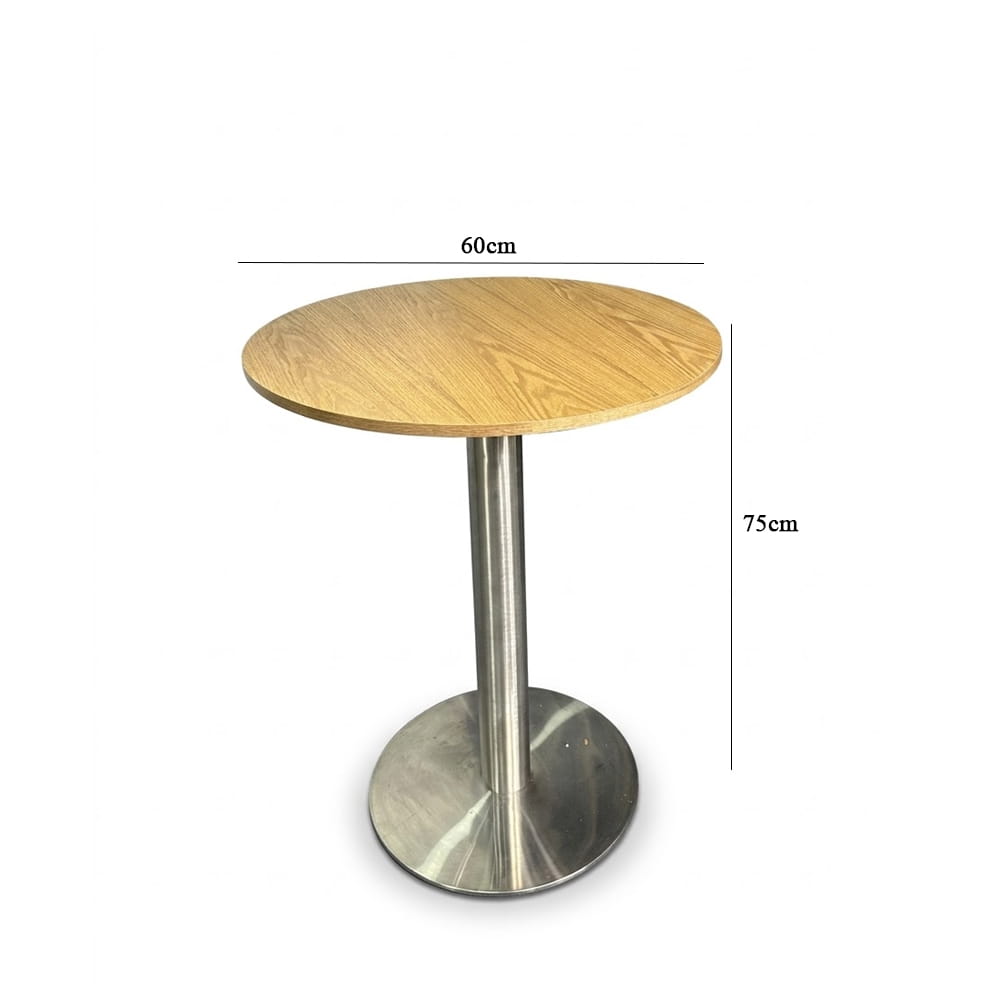| Chất liệu | Bàn cafe Mặt MDF, Chân inox, kt: Ø60/70/80*75. Bàn ăn café Mặt gỗ phủ Veneer, chân inox kt: Ø80*75 |