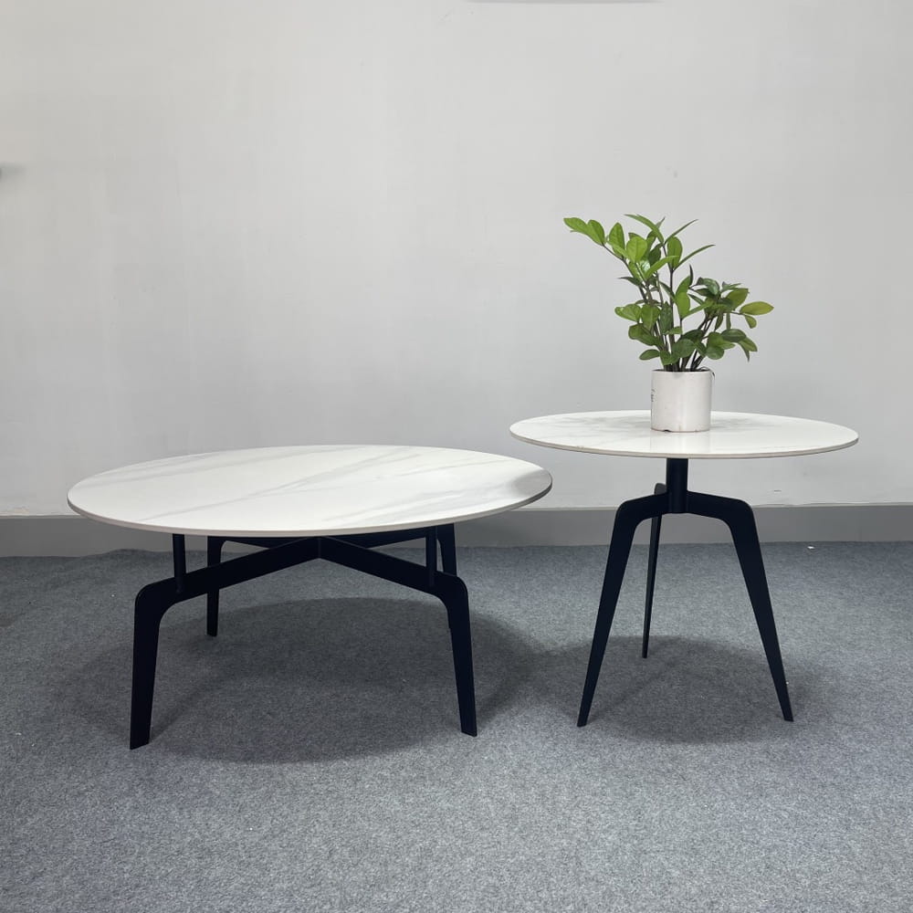 Chất liệu Bàn Trà sofa Mặt  Đá phiến Chân thép đặc sơn tĩnh điện đen. kt : Ø50/60*52