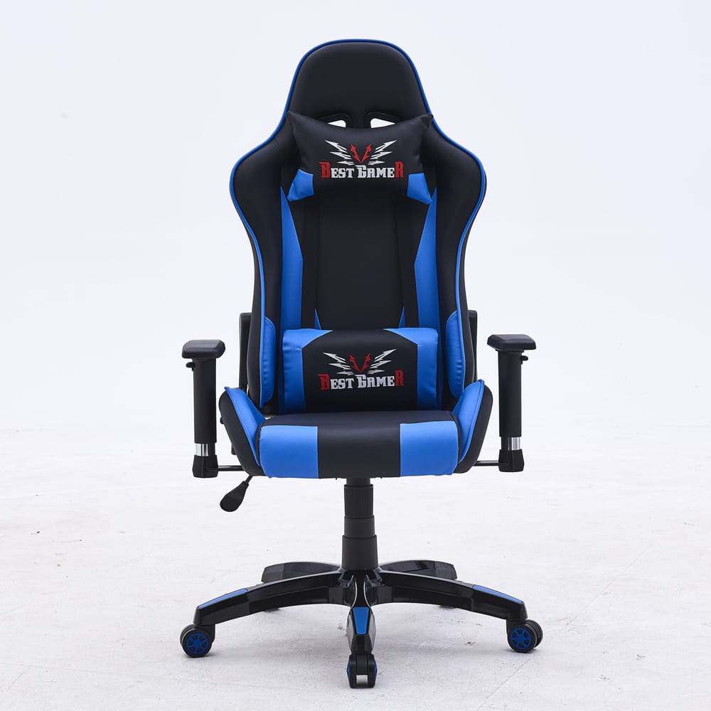 Đệm ngồi & Phụ kiện: Lớp đệm mút nguyên khối dày dặn, độ đàn hồi cực tốt. Ghế đi kèm bộ đôi gối tựa đầu và gối lót thắt lưng êm ái, giúp nâng đỡ cơ thể tối đa.