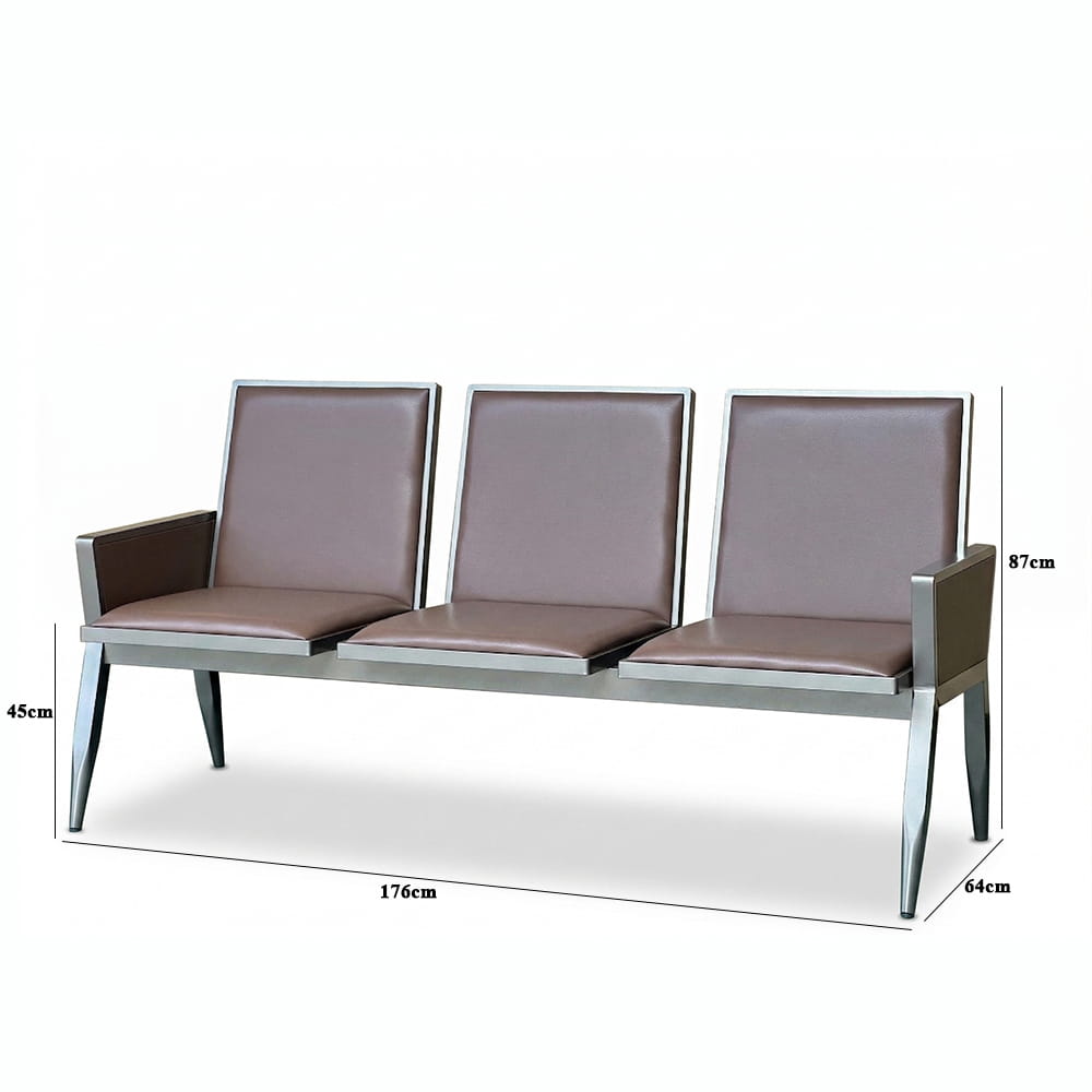 | Chất liệu | Ghế phòng chờ thép sơn tĩnh điện bọc da, 3 chỗ ngồi, kt: 176*64*87 |