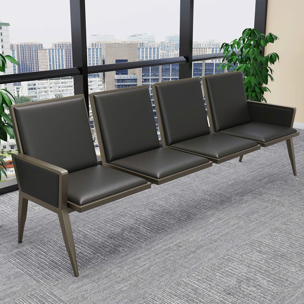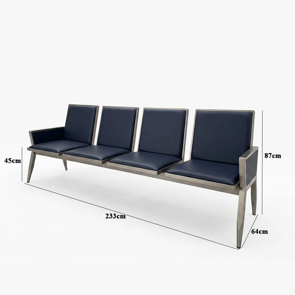 Chất liệu Ghế phòng chờ thép sơn tĩnh điện bọc da, 4 chỗ ngồi, kt: 233*64*87