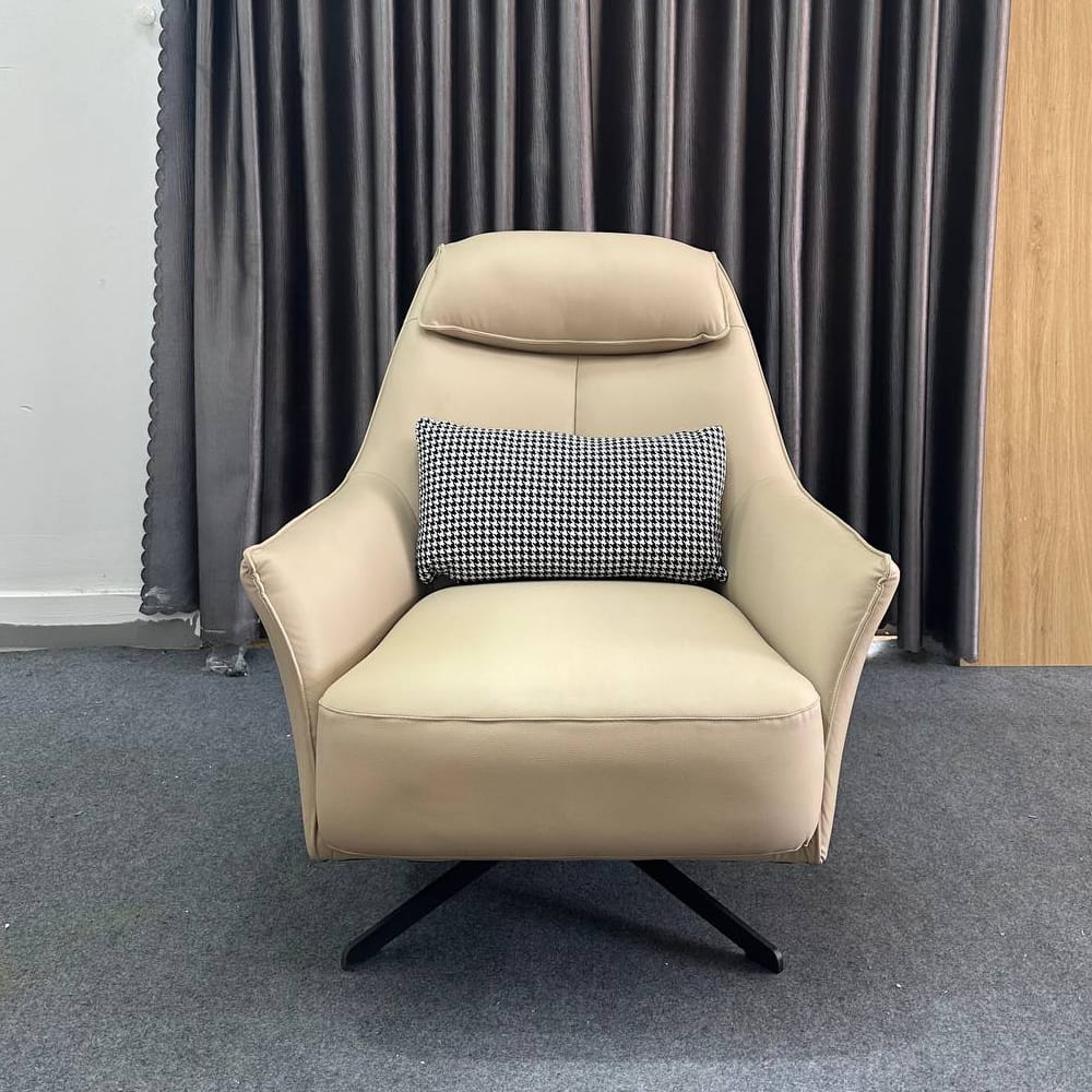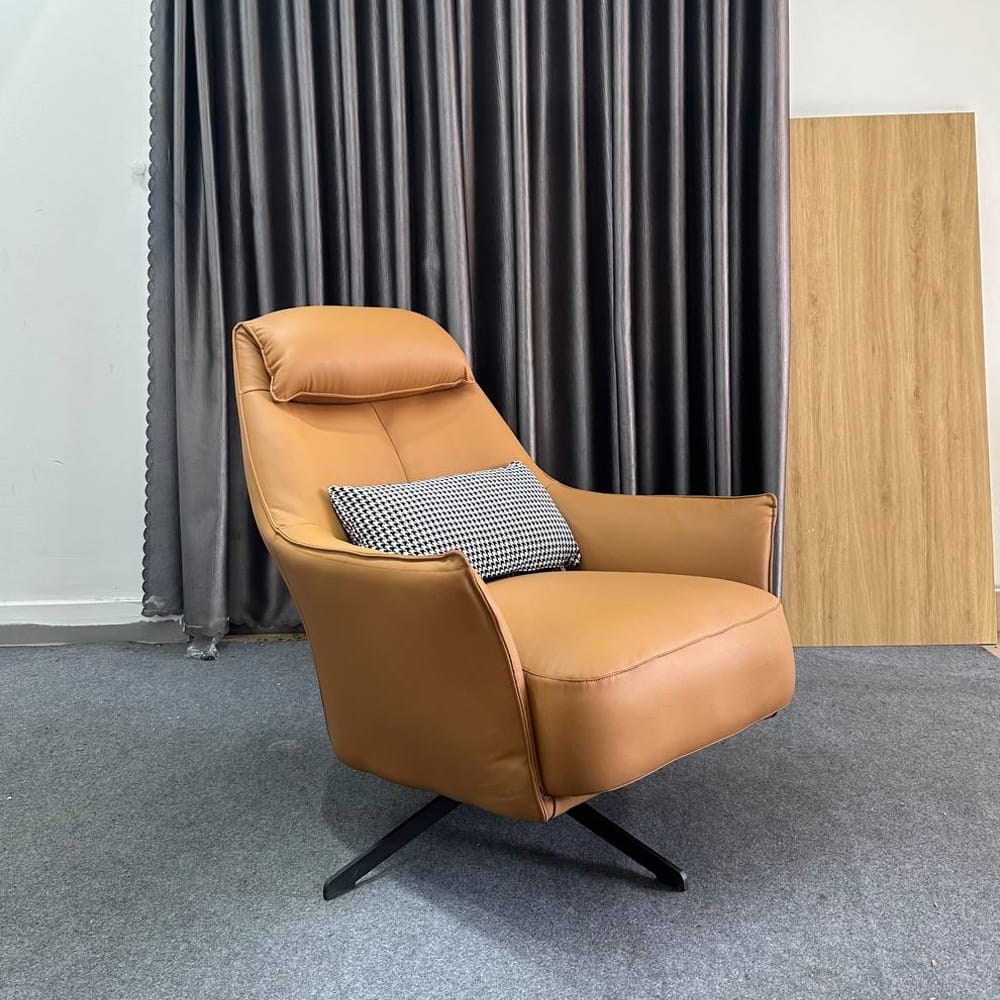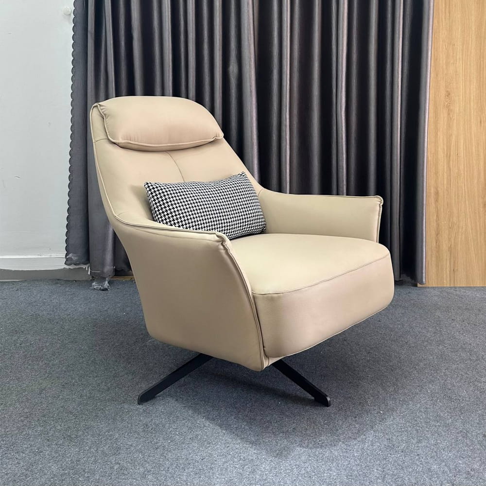 | Chất liệu | Ghế thư giãn cao cấp bọc Da Chân thép sơn tĩnh điện XOAY 360 ĐỘ, kt: 81*100*89 (Chiều cao đến chỗ ngồi 45cm) |