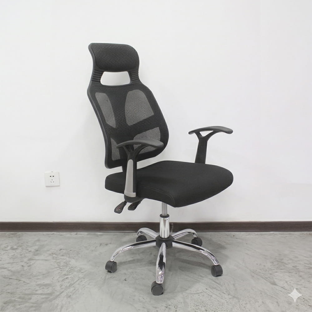 Lưng ghế: Được bọc vải lưới cường độ cao, có khả năng chịu lực tốt và tạo độ thông thoáng tuyệt đối cho lưng người ngồi.